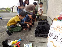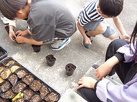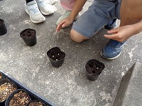 本やタブレットで調べていた大豆、今日は種まきをしていました。