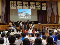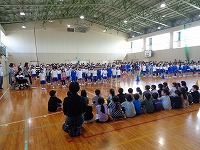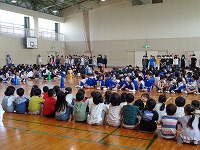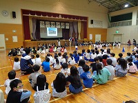 全校児童が体育館に集まって、1年生を歓迎する会を開きました。