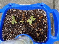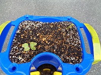 何人かの子どもの植木鉢では、芽が出て、ふたばが開いてきました。