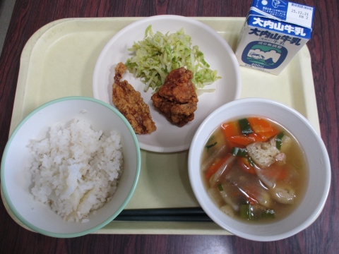 今日のメニュー・・・麦ごはん 鶏のからあげ のっぺい汁 香味漬け