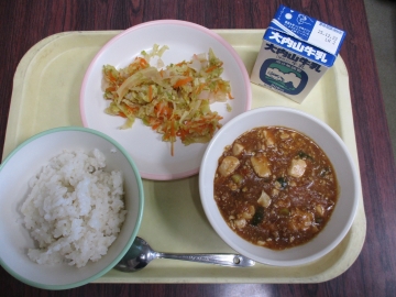 今日のメニュー・・・麦ごはん 麻婆豆腐 中華サラダ 牛乳