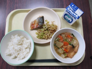 今日のメニュー・・・麦ごはん さばの一味焼き 大根のそぼろ煮