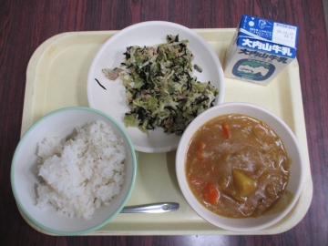 今日のメニュー・・・麦ごはん ポークカレー ひじきサラダ 牛乳