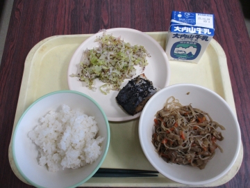 今日のメニュー・・・麦ごはん さわらの南部焼き 五目きんぴら しそあえ 牛乳