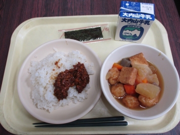 今日のメニュー・・・麦ごはん 一口おでん 納豆みそ 牛乳