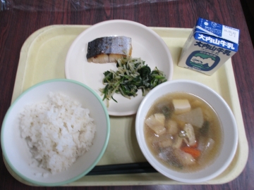 今日のメニュー・・・麦ごはん さわらの照り焼き けんちん汁 ほうれん草のおひたし