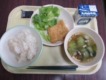 今日のメニュー・・・麦ごはん いかフライ そえレタス チンゲン菜のスープ 牛乳