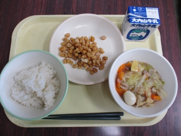 今日のメニュー…麦ごはん 八宝菜 フライビーンズ 牛乳