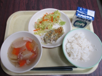 今日もメニュー・・・麦ごはん あじのハーブグリル コールスロー 大根のスープ