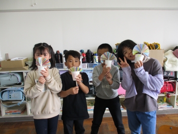 2年生の教室です。国語の説明文の授業でした。紙コップ花火のおもちゃを作っていて、教室中とってもきれいな花火がたくさんあがっていました!