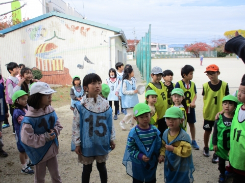 3年生がこども園ぱんだ組さんと一緒に遊びました。グループごとにわかれて、3年生が相談して決めたあそびでぱんだ組さんを楽しませてあげてました。