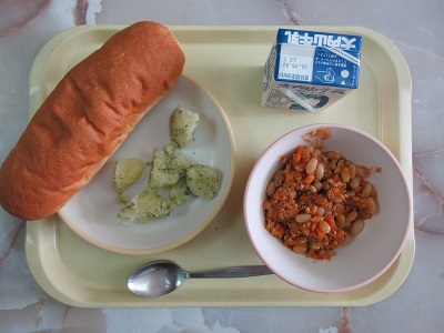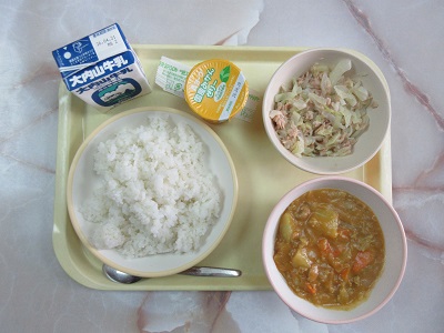 〇むぎめし ポークカレー ツナサラダ みかんゼリー 牛乳