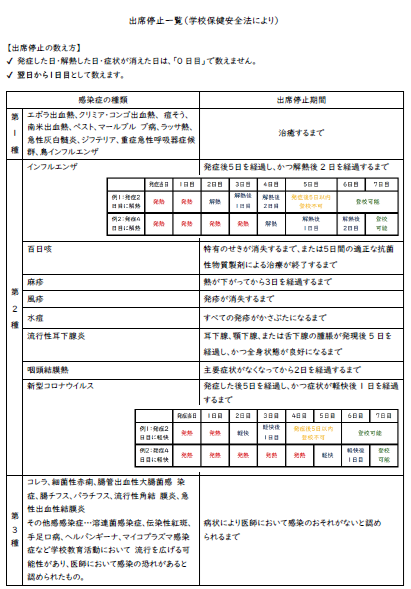 〇出席停止の場合 こちらの表にてご確認ください。