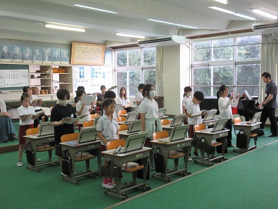 【1001】元三重大学教育学部附属中学校の川島雅樹先生を招聘して、3・4年生に音楽の授業を行っていただきました。歌唱指導をしていただき、歌に強弱をつけたり、早口言葉などを使いながら、タンギングを意識したリコーダーの合奏をしたりと、子どもたちは楽しい音楽の時間をいつも以上に過ごすことができました。