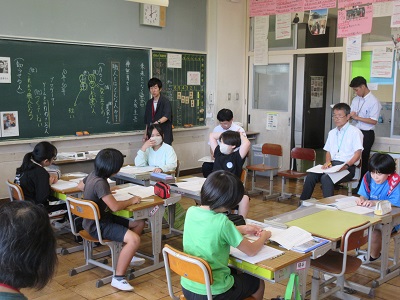 6年生が「考える」について考えを交流し、自分の考えを深めたり他者との違いに気づいたりしながら、次時の課題を導く活動をしました。いつもながらの楽しい追究の時間になったようです。今回も三重大学の守田先生にご教授願いました。