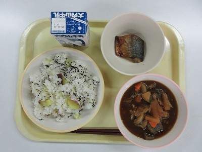 〇いもごはん さばのいちみやき ぶたじる 牛乳
