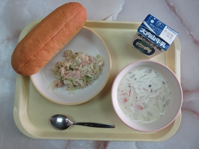 〇セルフツナサンド(ロールパン・ツナサラダ) きのこチャウダー 牛乳
