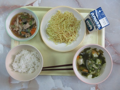 〇むぎごはん あんかけやきそば とうふとわかめのスープ 牛乳