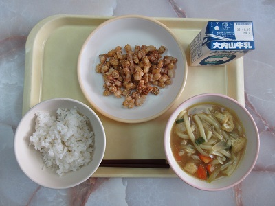 〇むぎごはん カレーうどん まめれんこん 牛乳