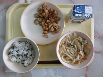 〇わかめごはん しのだうどん まめごぼう 牛乳