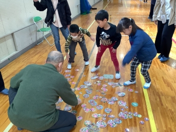 昨日の午前中には、たくさんの地域の方々にご来校いただき、1年生と保護者を対象に「昔の遊び」を教えていただきました。メンコやコマ回し、あや取りやお手玉、けん玉、羽子板等々、保護者の方には子どもと一緒になって昔の遊びを楽しんでいただきました。来ていただいた地域の方々からも「子どもたちと一緒に遊んで若返りました」「私の方が子どもたちに癒されました。ありがとう」と言っていただきました。