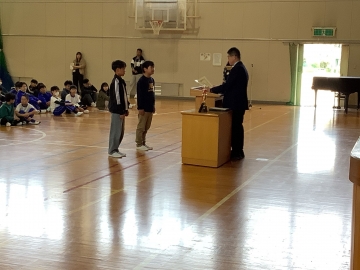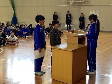 今週月曜日の5限目に全校集会がありました。個人表彰と養正ファイヤーズの表彰の後、児童会役員が司会を務め、じゃんけん列車と先生当てクイズをしました。じゃんけん列車で一番長い列車を作った先頭の人には児童会オリジナルの賞状が児童会会長から手渡され、その後の先生当てクイズでは大いに盛り上がり、先生の意外なところも知ることができました。後期児童会役員の皆さん、ありがとう!