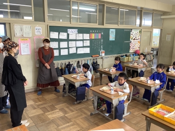 先週金曜日に保護者対象の給食試食会を行いました。この日は1年生の給食配膳の様子や子どもたちが給食を食べている様子を見ていただいた後、会議室にて実際に給食を試食していただき、新町小学校の横山栄養教諭からも栄養に関するお話を聞いていただきました。参加していただいた保護者の方から「団子は手作り感があり、食べてて心も体も温まりました」「給食はとても美味しく、栄養バランスも考えていて毎日ありがたい気持ちでいっぱいです」などの嬉しい感想もいただきました。