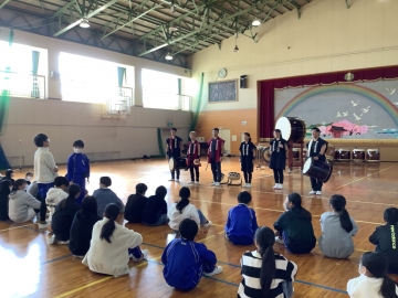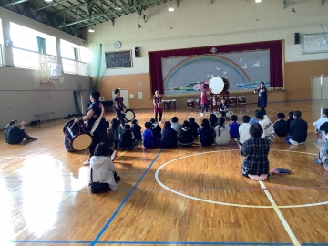 昨日の1・2限目、津高虎太鼓の皆さんにお越しいただき、6年生を対象に「和太鼓体験」をさせていただきました。迫力ある演奏を見せていただいた後、クラスごとに太鼓の叩き方、リズムなどを優しくていねいに、そして分かりやすく教えていただきました。最初は子どもたちもぎこちない様子でしたが、徐々に太鼓のリズムに体が乗ってきたようで、最後は体育館全体がお祭り会場のように感じました。お忙しい中、お越しいただいた髙虎太鼓の皆さん、そして保護者の皆さんにも心より感謝致します。