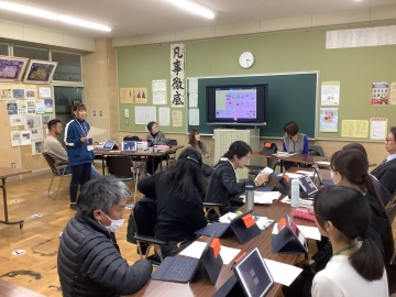 教員はそれぞれ日々授業を公開しながら、授業改善に向けて取り組んでいます。時には他校へ出向いて先進的な授業を視察することもありますが、多くは自校で授業を公開し、その後事後検討会を行い、子どもたちの授業の様子を中心に話し合いを行っています。時には指導主事や大学教授の方にもお越しいただき適切な助言もしていただいています。どの研修会でも子どもたちの素敵な姿、話に花が咲いています。