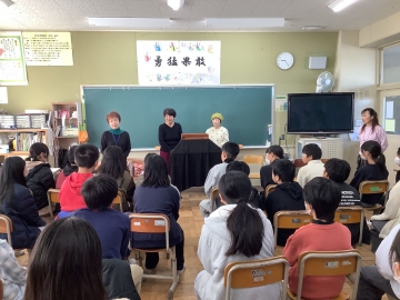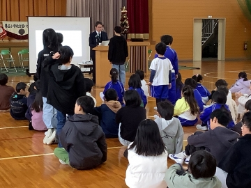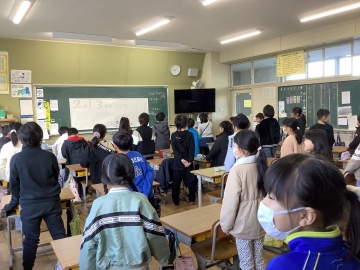 今日で二学期が終了しました。終業式の前には金管バンドクラブによる「クリスマスコンサート」があり、ジングルベルや赤鼻のトナカイなど4曲を披露してくれました。その後、終業式では学校長の話と表彰式があり、冬休みの生活のきまりについて話を聞いた後、体育委員会から来年行われる縄跳び集会についての説明もありました。今日はNHKさんが取材に来られ、教室でインタビューを受けている子もいました。この日の様子は夕方「NHKまるっとみえ」で18時30分から放映予定です。