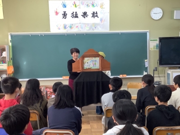 一昨日から3日連続で本校は「おはなしの日」になりました。昨日は1年生には図書ボランティアの皆さんによる読み聞かせをしていただき、1~6年生には、3日連続で津おはなしの会「ポップコーン」の皆さんによるストーリーテリングをしていただきました。「変なの~」「え~!そうだったのか!」「その本図書室にある?もう1回読みたい!」「あれ?自分の知っている話と違うなぁ…」子どもたちからは、いろいろな感想の声が聞こえてきます。そんな子どもたちの反応を見るのも思わず出る声を聞くのも楽しみの一つです。