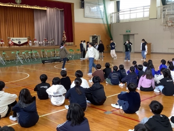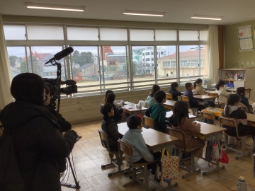 明けましておめでとうございます。今日から三学期が始まり、学校に子どもたちの元気な声が戻ってきました。いつもなら体育館で始業式を行うところですが、現在体育館が工事中のため、各教室で始業式を行いました。クラスごとに校歌を歌った後、学校長の話もテレビを通して聞きました。三学期は一番短い学期ですので、来年度までの約三か月間を今の仲間とともに大切に過ごしてほしいと思います。今日は読売新聞さんが取材に来てくれていました。