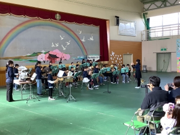 卒業式の翌日、3月20日(金)に体育館にて金管バンドクラブの「卒業演奏会」が行われました。今年度で卒業する6年生は、この一年間養正小金管バンドクラブの中心的役割を果たしてくれました。新しく入部した下級生に優しく教えてくれたり、毎日の練習にも声をかけてくれたりと素敵な7名の子どもたちでした。今日の演奏はどの曲も素晴らしくて、会場からもたくさんの拍手をいただいたり、ポンポンを振っていただいたりと会場一体で楽しんだ最高の卒業演奏会になったと思います。