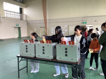 昨日の1限目、来年度前期の児童会役員選挙のための「立会演説会」を体育館にて行いました。会長、副会長、書記それぞれの推薦人と立候補者はどの子もしっかりと演説し、聞いている子どもたちも真剣に最後まで演説内容を聞いていました。来年度から高学年の仲間入りをする3年生も今回から児童会選挙に参加し、当日は本物の投票箱を津市選挙管理委員会からお借りして行いました。卒業した6年生のように来年度からは選出された新たな児童会役員が本校を引っ張ってほしいと思います。