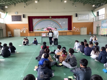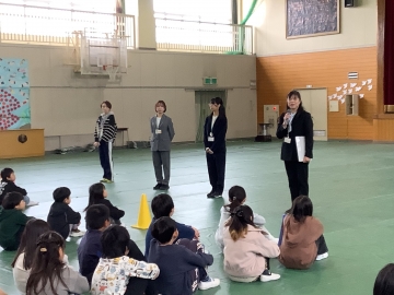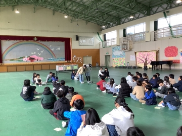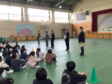 先月行った「6年生との遊び(4~6年)」とは少し違って、1~3年生との遊びは合奏を披露したり、一緒に大縄跳びをしたり、左手でドッチボールをしたりと、少し工夫を加えた