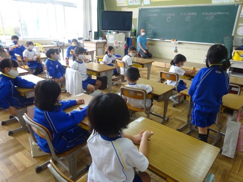 月曜日のお別れ式に向けて、1年から4年生が呼びかけや式の流