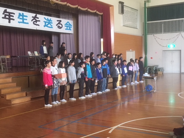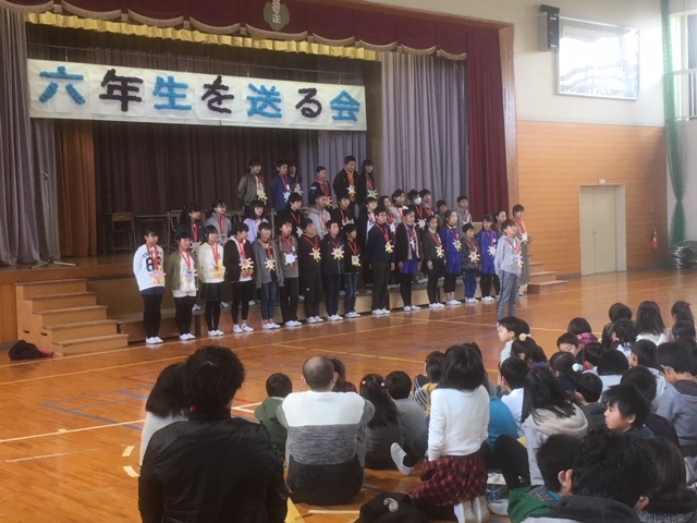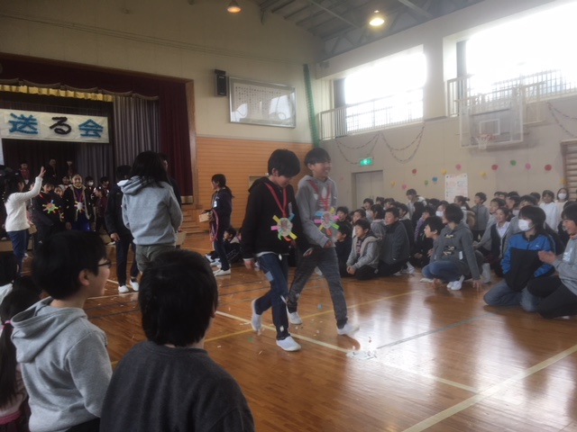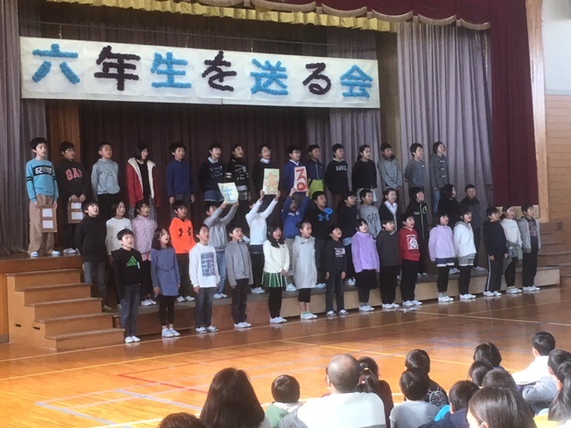 5年生から6年生へのプレゼントです。1~4年生からも出し物のあとプレゼントがありました。