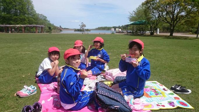 お楽しみのお弁当タイムです。お弁当は、おいしく、天気も良くて、最高です。