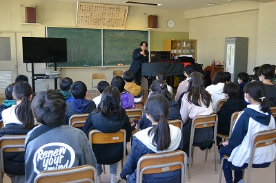 在校生から歌のプレゼントとお礼とお祝いの呼びかけを行いました。その中で次の年になりたい姿も発表しました。