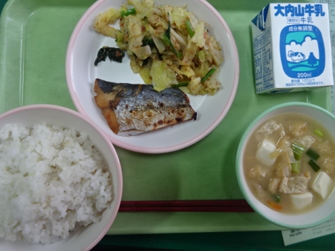 麦飯・鰆の照り焼き・キャベツのおかかあえ・白みそ汁