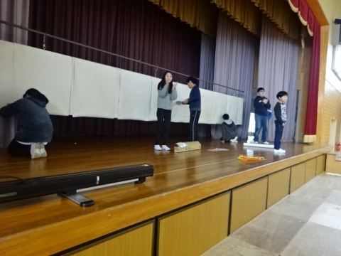 明日の卒業式の会場準備を4年、5年が作ってくれました