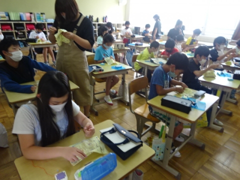 3年生 図工の作品バックを写真にとって先生におくり、互いにタブレット上で鑑賞できるようにしました。