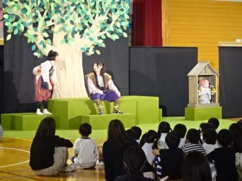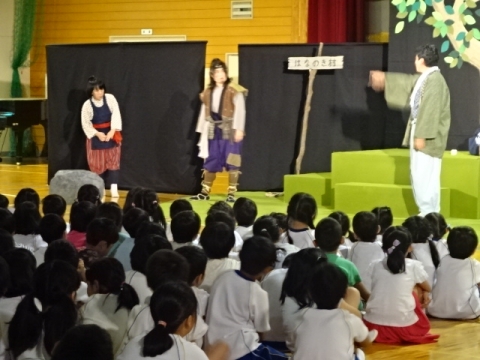 名古屋から「劇団うりんこ」のみなさんに来ていただき、「はなのき村」(新見南吉原作)という劇を見せていただきました。プロの演技にみんな見とれていました。