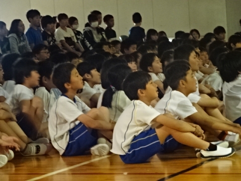 今日は、1年生から4年生までの子どもたちが6年生とお別れ式を行いました。