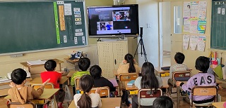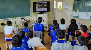 どの学年の子どもたちも、リズムに合わせて踊ったり、笑ったりしてとても楽しそうにビデオレターを見ていました。