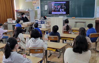 長時間大人数で集まることを避けるために、在校生は6年生に感謝の気持ちを伝えるビデオレターを作成し、6年生は思い出を伝えるビデオレターを作成して、各教室で視聴しました。