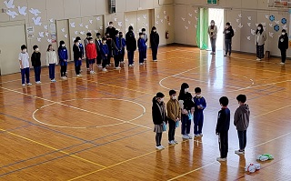 卒業式には出席しない1年生から4年生が、6年生とのお別れ式を