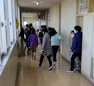 今日18日は、6年生が2時間目に、2年生が4時間目に避難訓練を行いました。