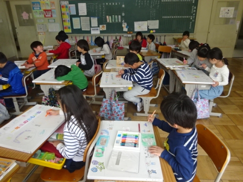 3年生 図工の作品バックを写真にとって先生におくり、互いにタブレット上で鑑賞できるようにしました。