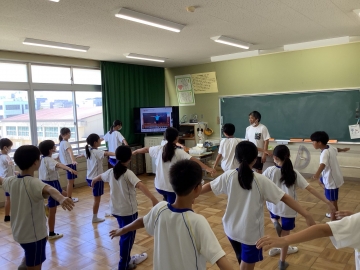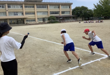 来月10月18日(土)に秋季運動会を予定していますが、まだまだ暑い日が続いているため、なかなか運動場での練習が出来ません。今は、クーラーの効いた教室で組体操の動きを確認したり、少し暑さが和らいだ時間帯に徒競走をしたりと工夫しながら練習に取り組んでいます。夜には秋の虫の音も聞こえるようになったので、来週からもう少し涼しくなると練習時間を増やせるかもしれません。